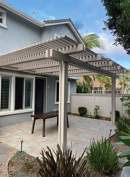 A lattice patio cover, or pergola is a great choice if you want an attractive way to shade your outdoor space while still allowing plenty of natural light and air circulation.